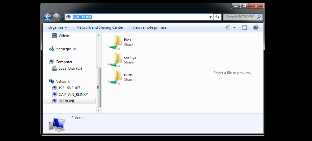 - On Windows, type \\RETROPIE into the computer folder. You can also replace RETROPIE with your Raspberry Pi’s IP address